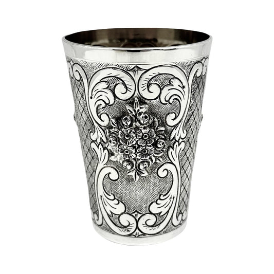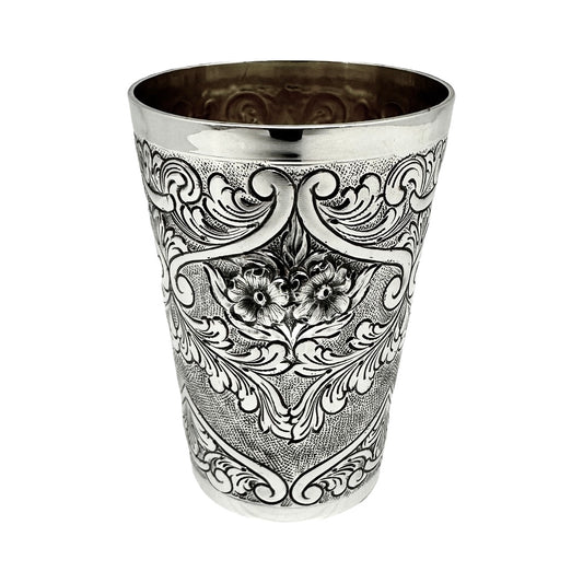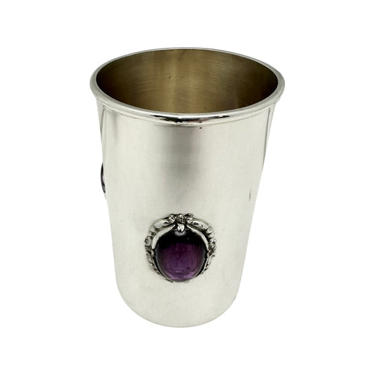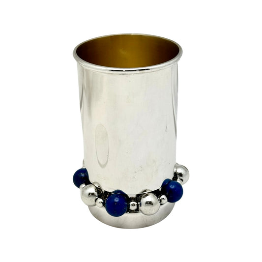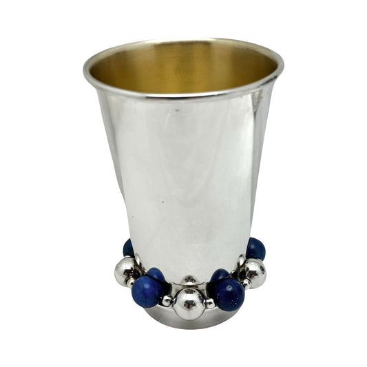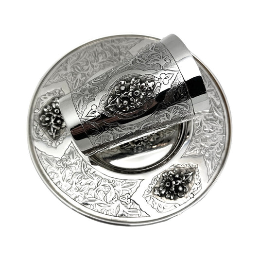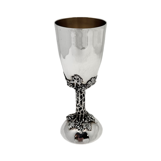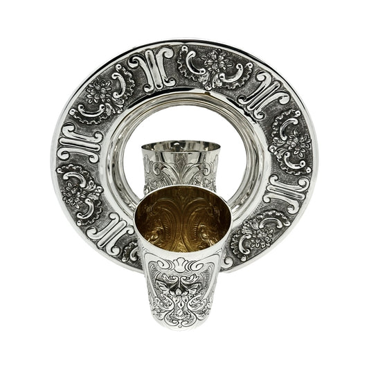 Italian Matte Silver Kiddush Cup Set w/ Hexagonal Plate