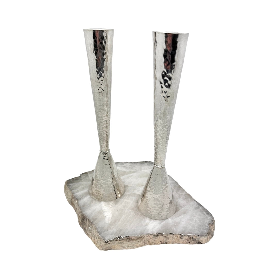 This silver plated rim clear quartz platter is a stunning piece to show off candlesticks or anything! Sizes vary between 9"and 10" x 6" to 8" deep. No two are alike. All are beautiful.