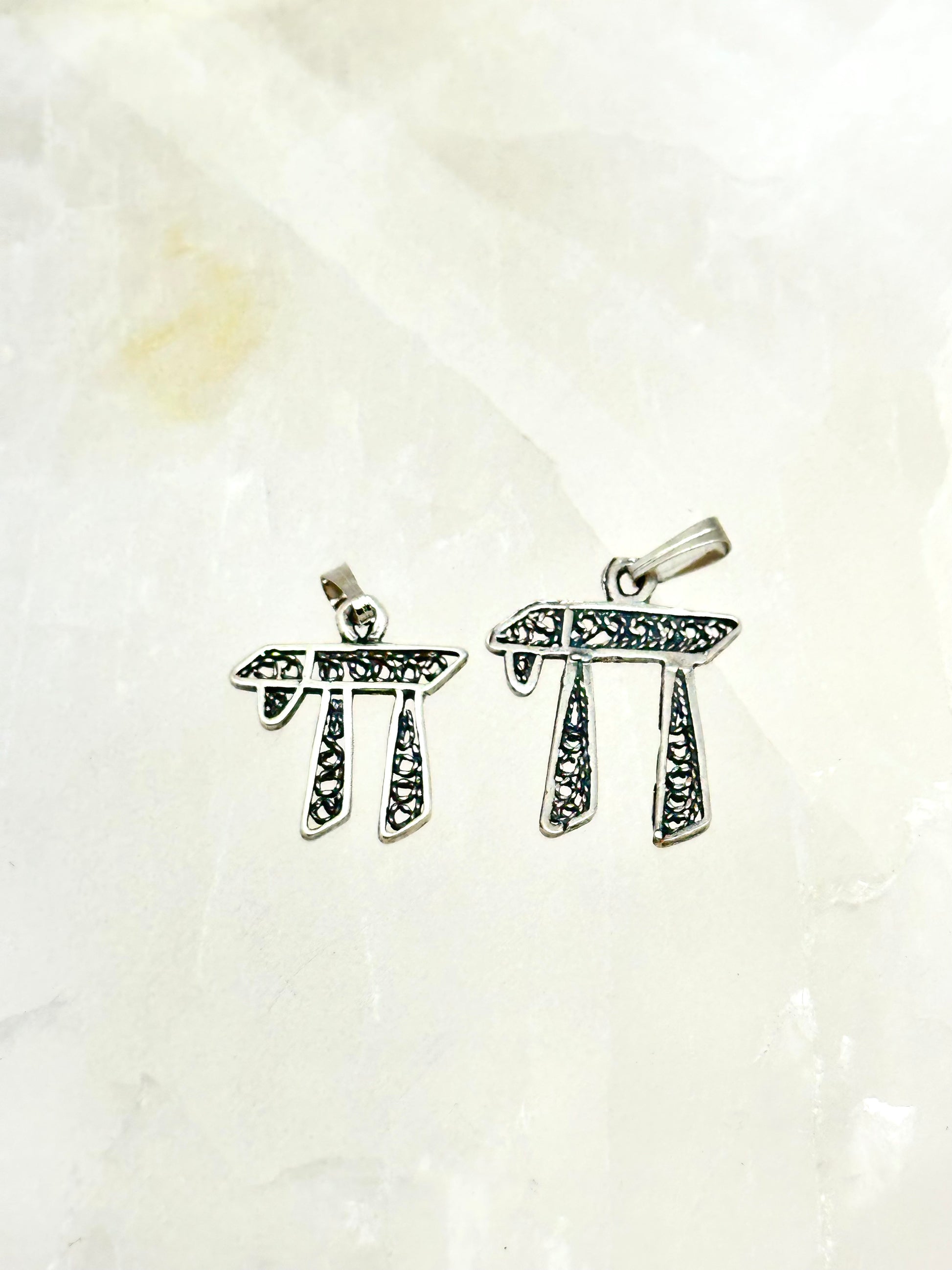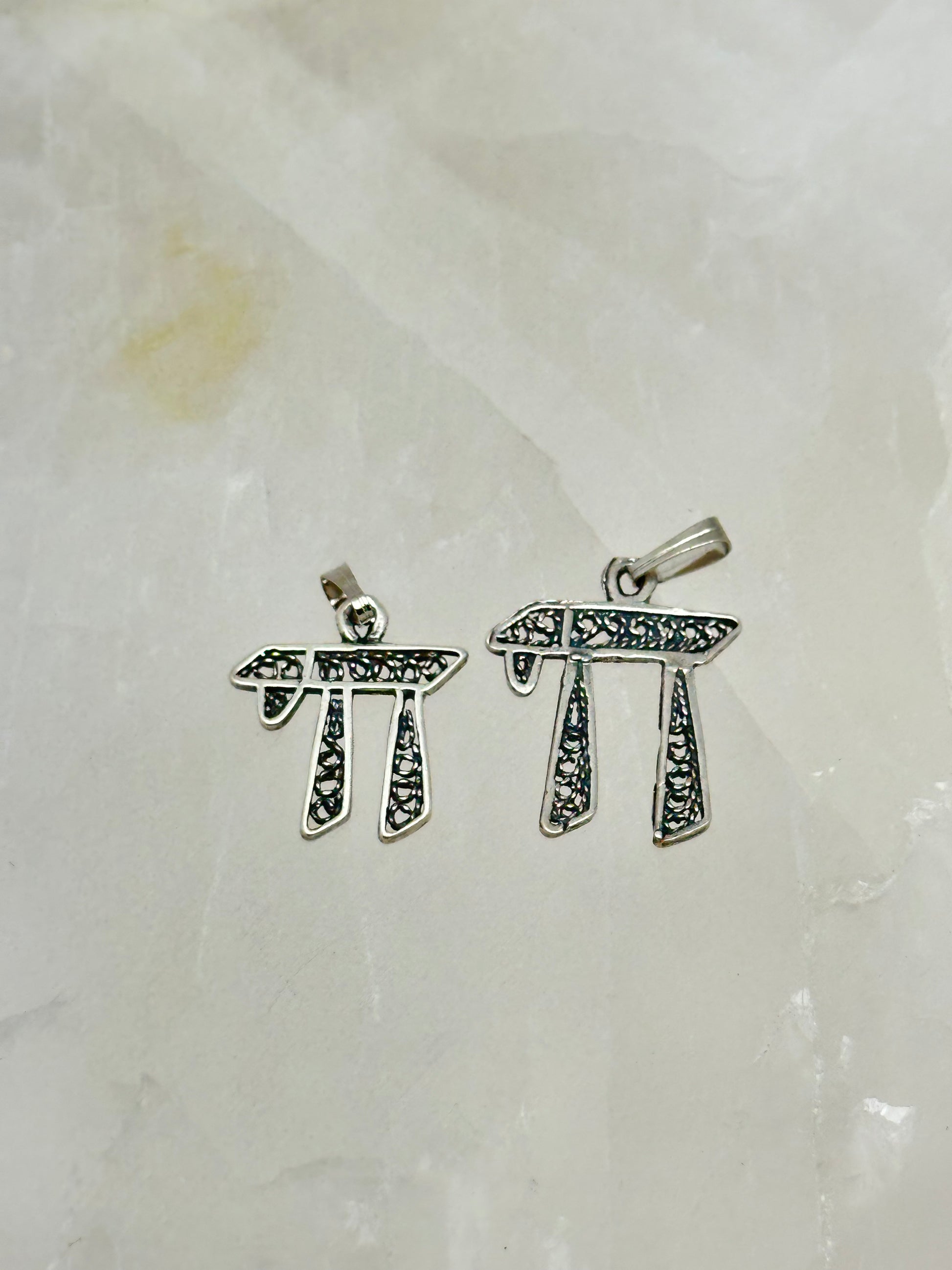 A delicate filigree chai that comes in 2 sizes. Choose!