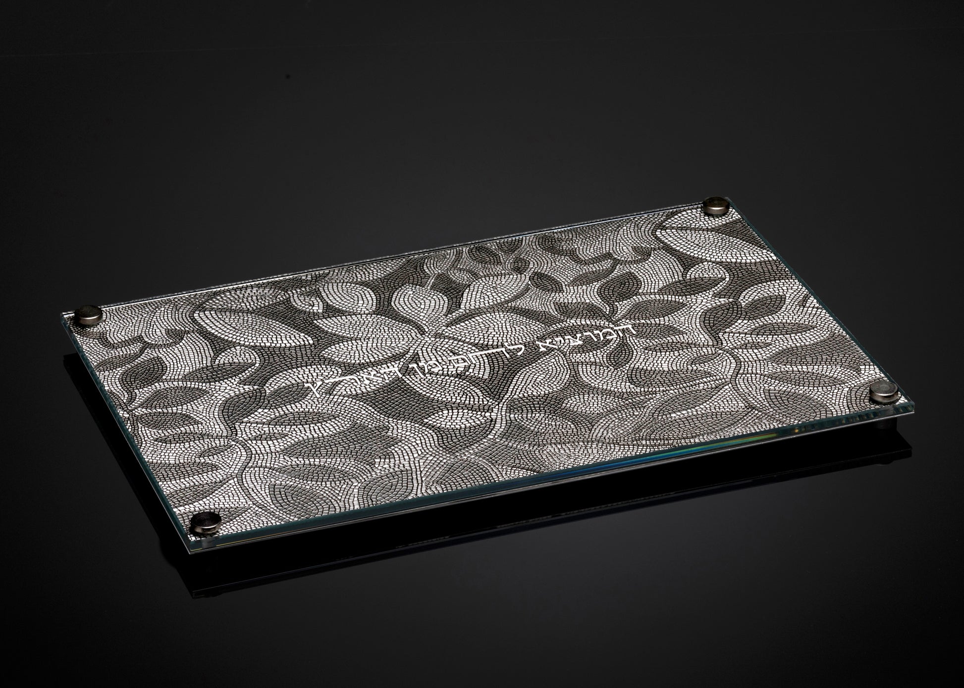 Ultra Clear Glass, with stainless steel mosaic patterns, made in Israel by Metalace.